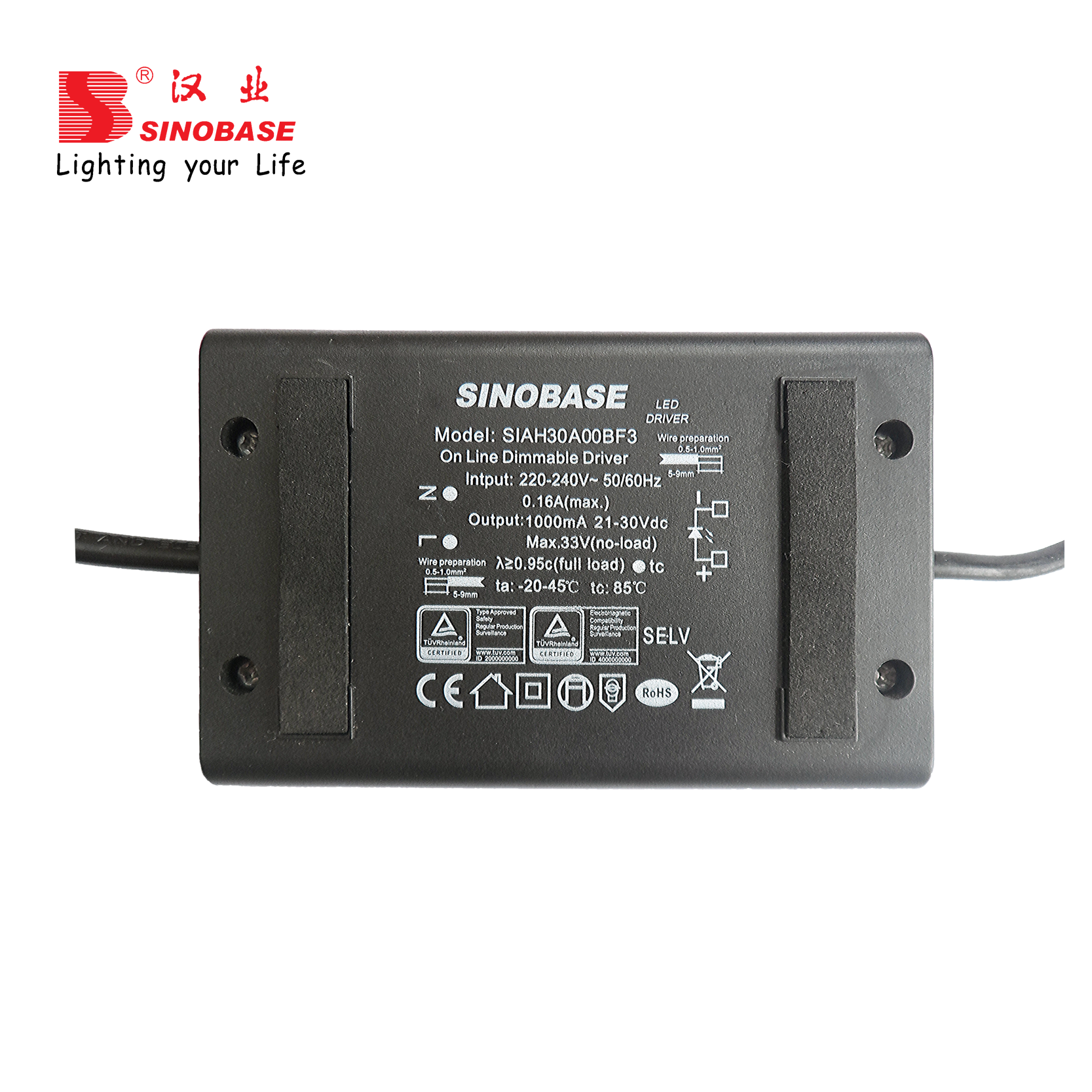 SINOBASE 21–30W Online Foot Dimmable LED Driver is designed for modern lighting applications such as hotel lamps, household floor lamps, and desk lamps. Engineered with high reliability and long service life (up to 50,000 hours), it delivers smooth dimming performance, stable output, and full safety protection.